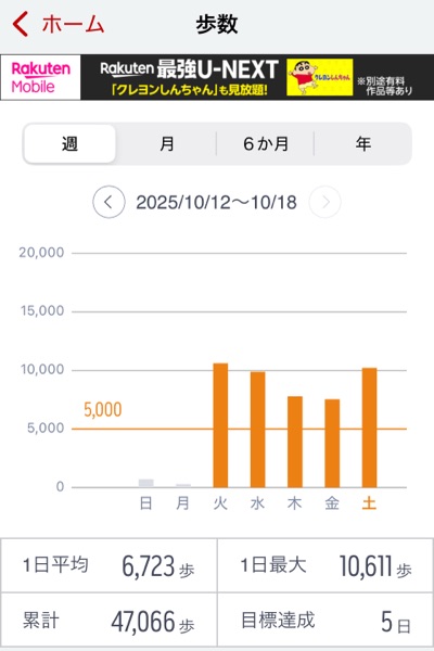 今週の歩数の報告になります。