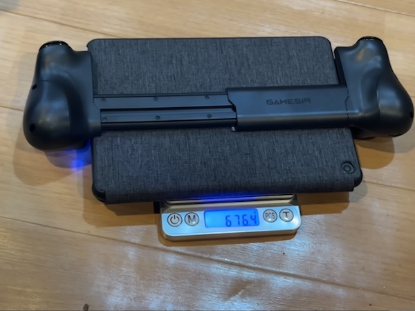 カバー付きで676.4gでした。コントローラー単品では135.4gなので、firehd8の重さの都合が大きいですね。