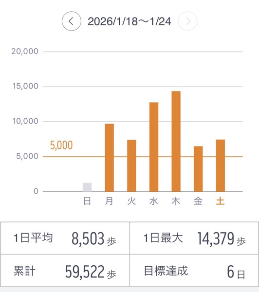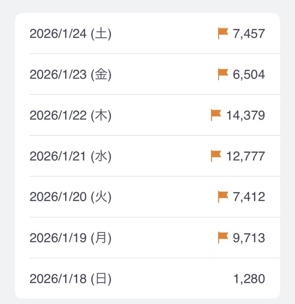 今週の歩数の報告になります。