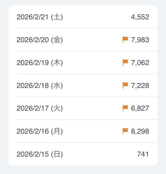今週の歩数の報告になります。