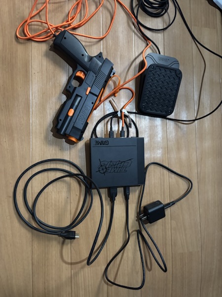 ガンコン2つにペダルがついており、スリムな本体と電源というハード単品で考えたらお手軽さが良いですね。